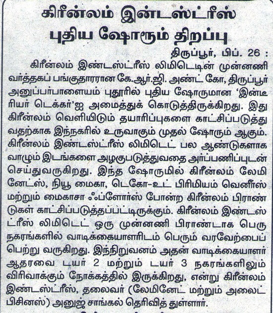 Greenlam showroom in Tirupur