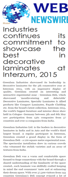 Industries continues its commitment to showcase the best in decorative laminates at Interzum, 2015